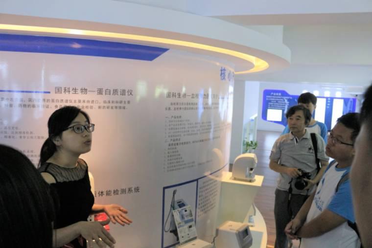 圖為安徽國科生物科技有限公司負責人向團隊成員及指導老師介紹公司先進的科技產(chǎn)品和已經(jīng)取得的成績。通訊員彭文婷攝