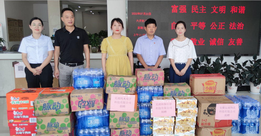 汛情依舊嚴(yán)峻,形勢不容樂觀,園區(qū)企業(yè)紛紛伸出援手,咨詢捐贈事宜,7月22日,園區(qū)再次組織蕪湖純米電子科技有限公司、蕪湖海豚信息科技有限公司、安徽運(yùn)速物流科技有限公司三家企業(yè)前往大礱坊街道捐獻(xiàn)保障物資50余件,兩次捐獻(xiàn)物資200余件,支援街道抗洪防汛,為一線提供物資保障。