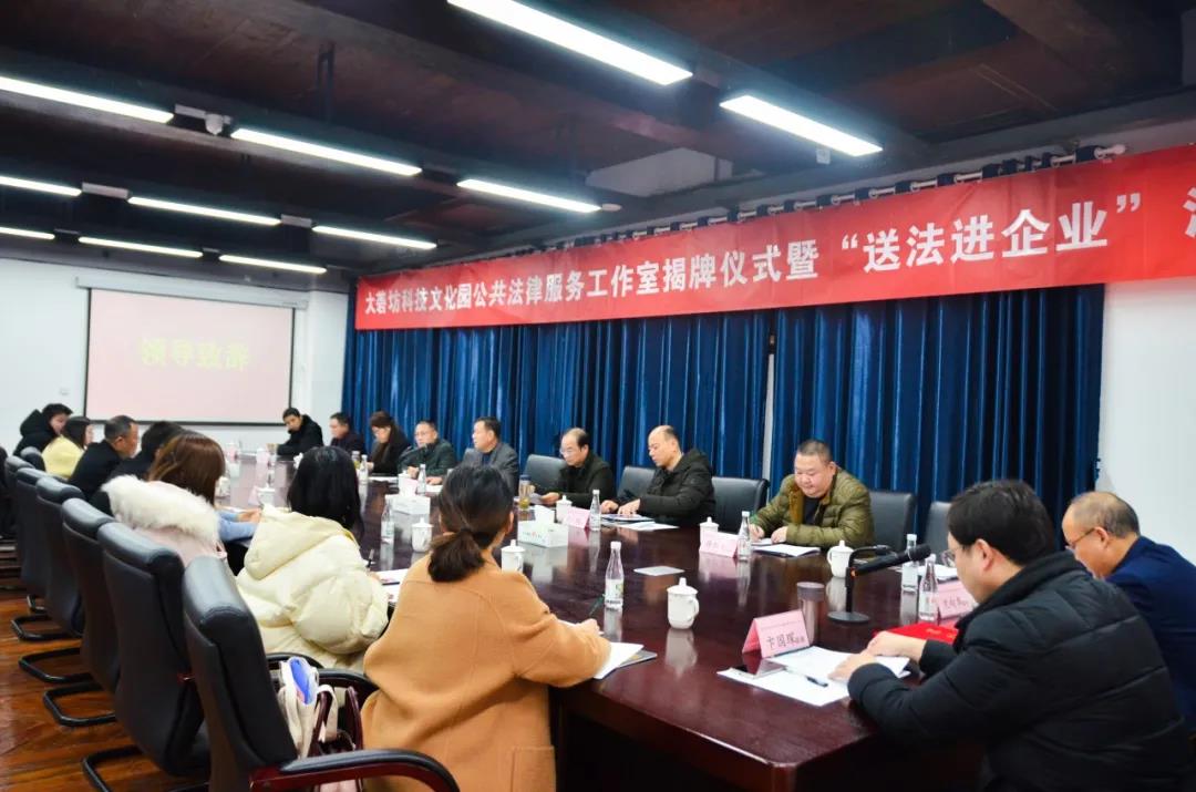 12月11日,大礱坊科技文化園公共法律服務(wù)工作室揭牌儀式暨“送法進(jìn)企業(yè)”活動(dòng)在園開(kāi)展,區(qū)司法局、區(qū)委政法委、區(qū)法院、區(qū)檢察院、區(qū)工商聯(lián)、區(qū)經(jīng)信局、區(qū)委常委、政法委書(shū)記魏峰及各成員單位、園區(qū)負(fù)責(zé)人、企業(yè)代表等50余人出席活動(dòng)。